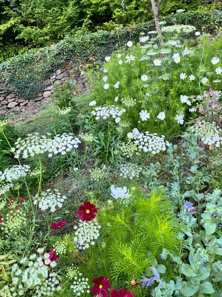 Desde el primer día soñé con aportar mi pequeño granito de arena a la biodiversidad de la zona desde nuestro jardín y nuestro huerto. Poco a poco lo fueron habitando borders de vivaces (gauras, salvia gregii, farinacea y leucantha, lavandas, equinaceas, alquileas, cosmos, verbena bonariensis), con la intención de atraer polinizadores. No tardamos en recibir la esperada visita de numerosas mariposas y abejas de variedades que aún no hemos aprendido a identificar, pero que sin duda ese va a ser uno de nuestros próximos objetivos, y pájaros como carboneros, lavanderas, arrendajos, pico picapinos, petirrojos, colirrojos, pinzones, mirlos…).