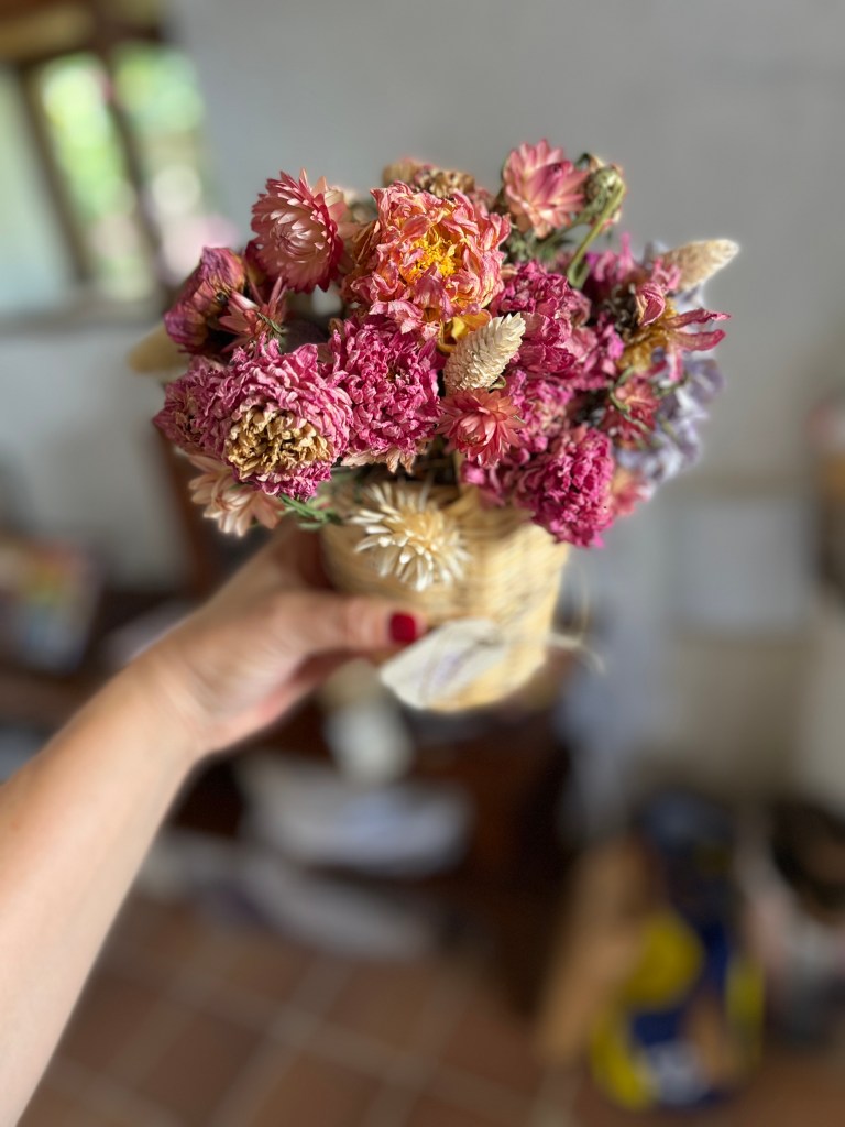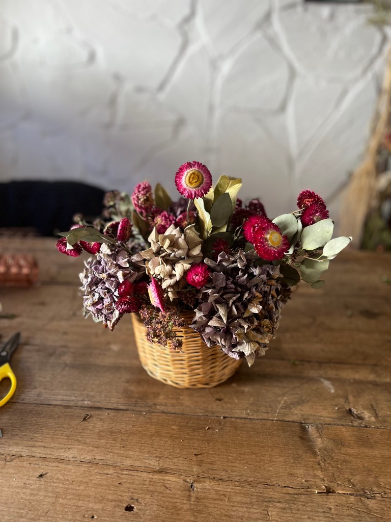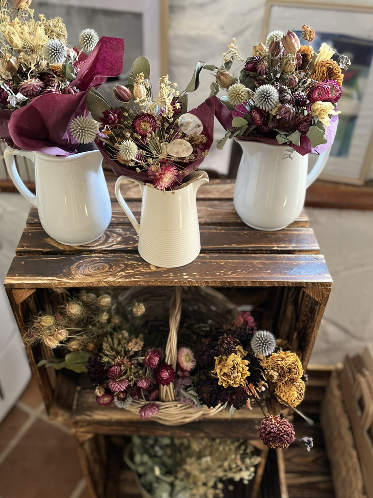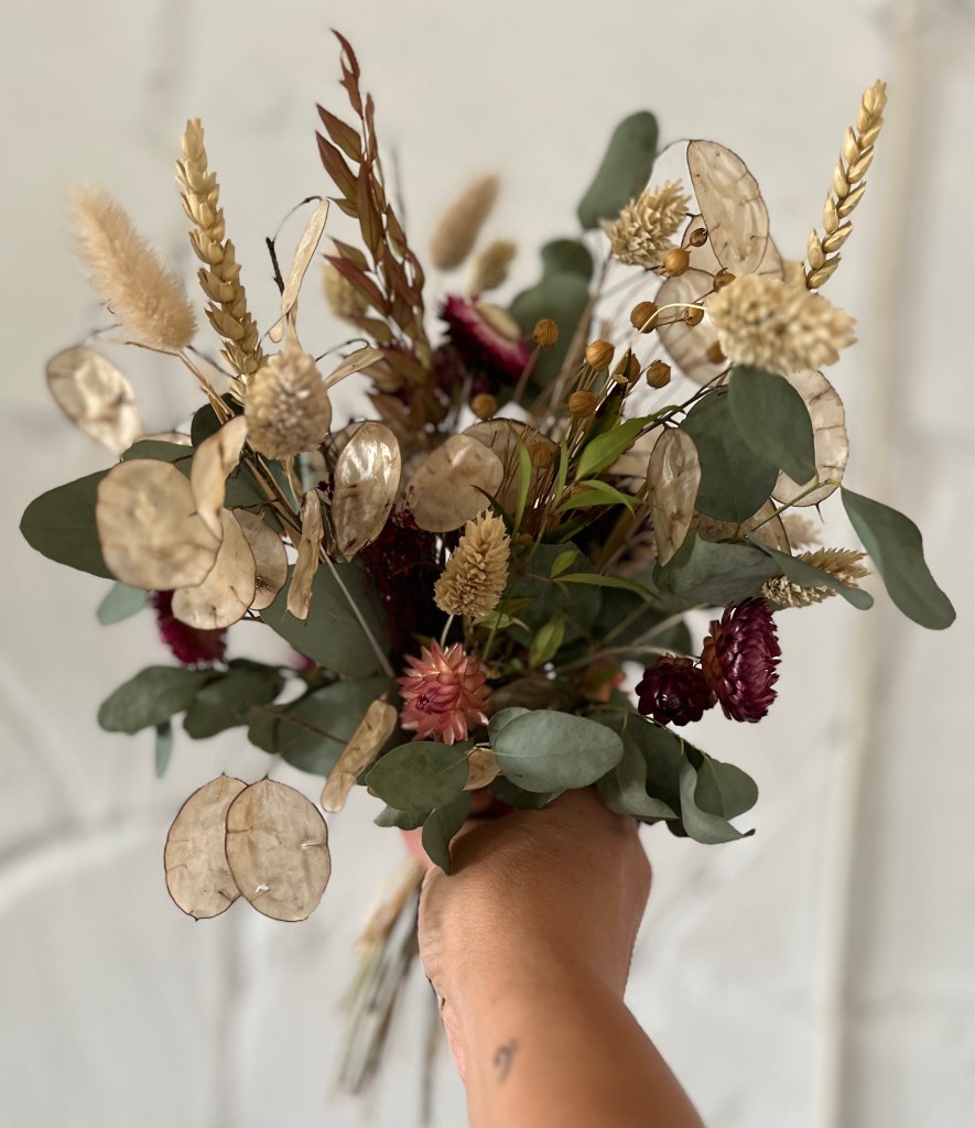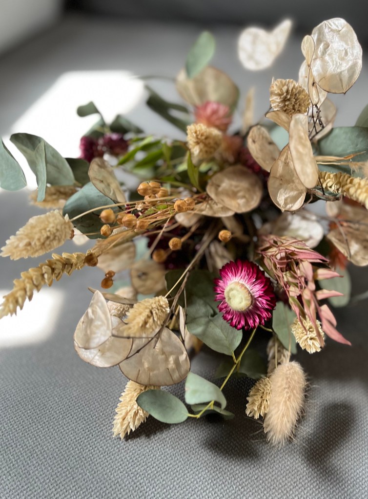 En el camino de la floristería que emprendí hace unos años, llegué casi por necesidad a a secar mis propias flores y explorar sus posibilidades. Tenía excedente de flores frescas y la sola idea de deshacerme de ellas carecía de todo sentido. Desde ese momento, mi pasión por el secado no ha dejado de crecer. Tuve que leer, formarme, aprender a trabajar con ellas. Su tacto, volumen y color son totalmente distintos al de las flores frescas.