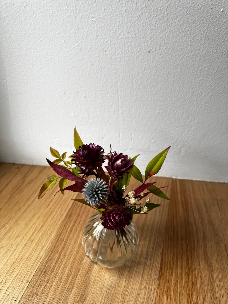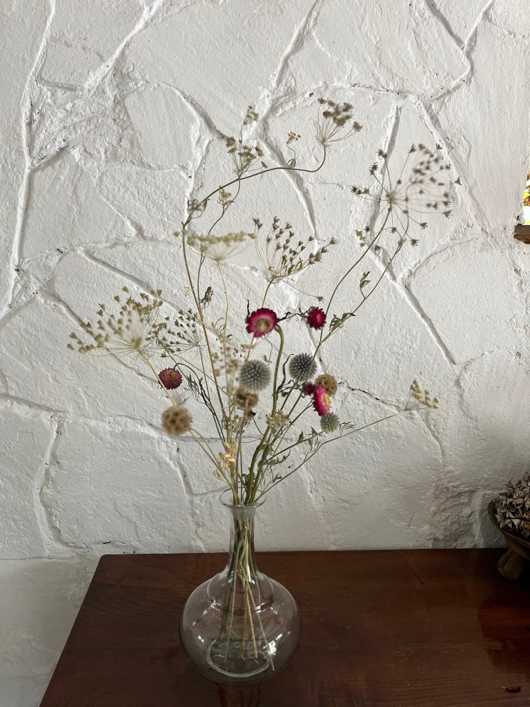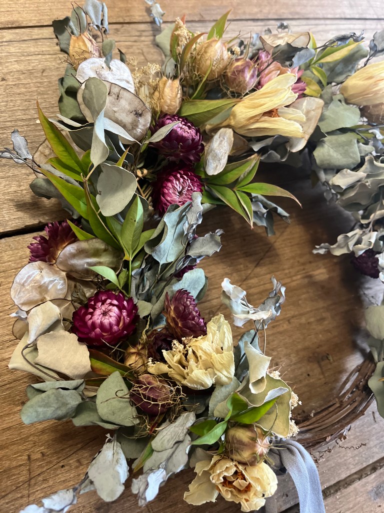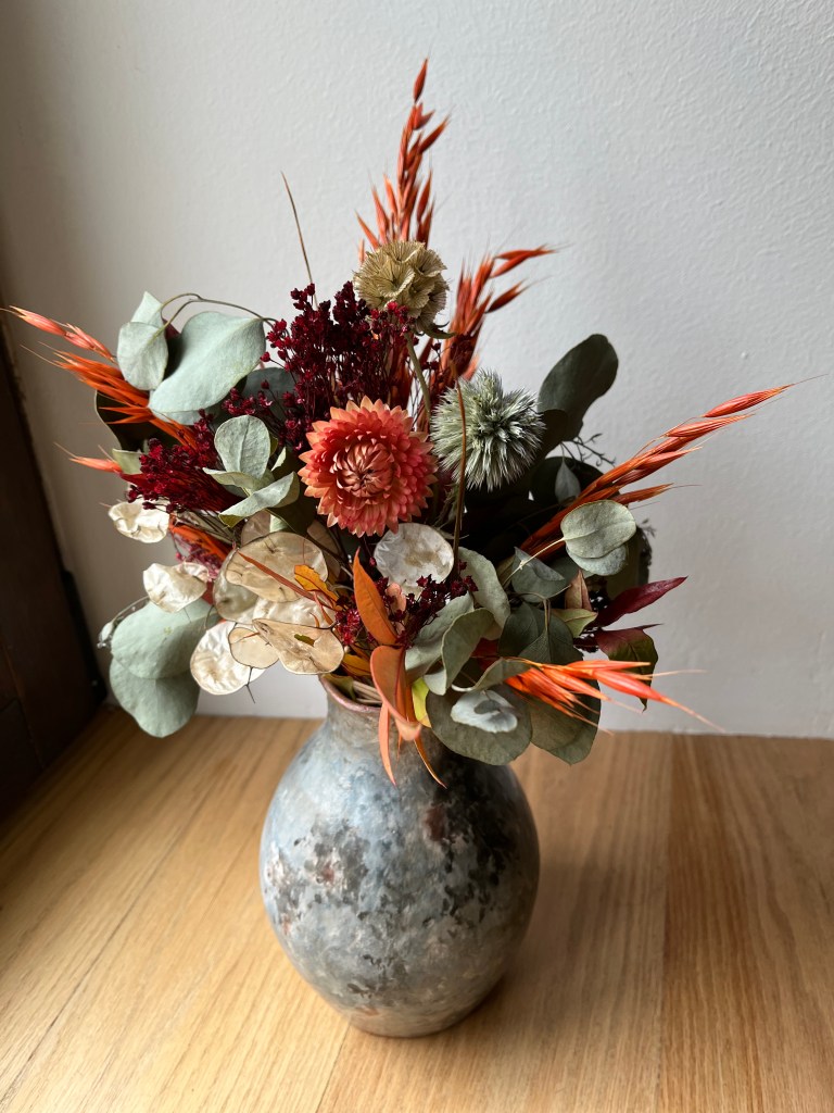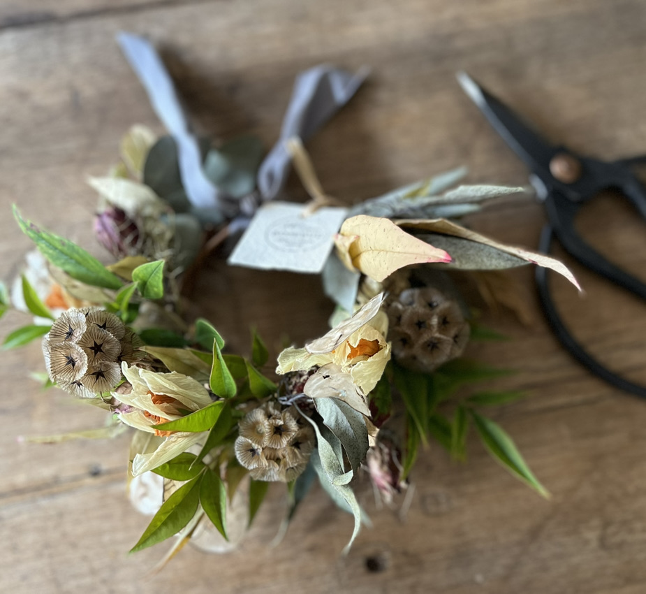 En el camino de la floristería que emprendí hace unos años, llegué casi por necesidad a a secar mis propias flores y explorar sus posibilidades. Tenía excedente de flores frescas y la sola idea de deshacerme de ellas carecía de todo sentido. Desde ese momento, mi pasión por el secado no ha dejado de crecer. Tuve que leer, formarme, aprender a trabajar con ellas. Su tacto, volumen y color son totalmente distintos al de las flores frescas.