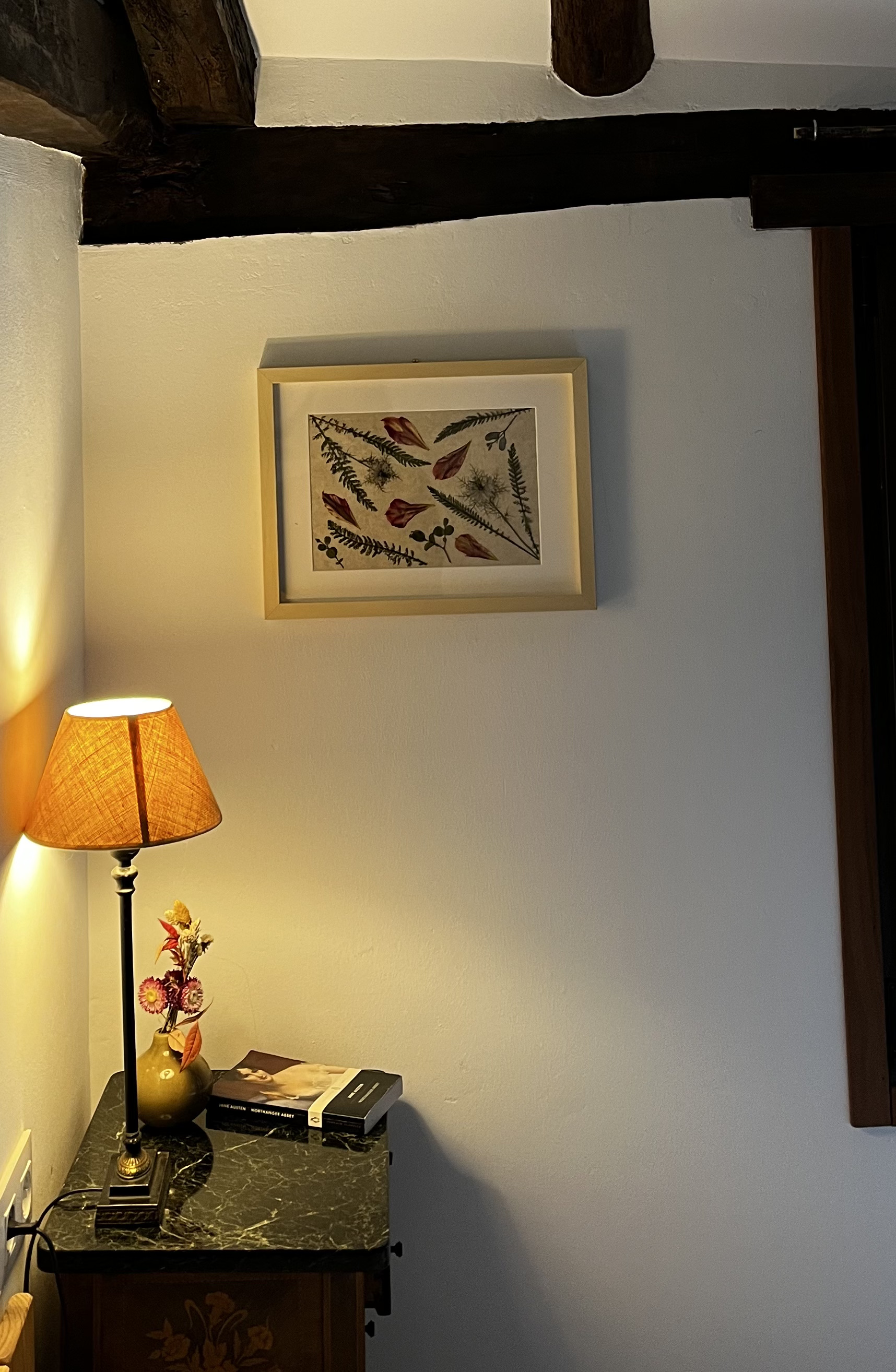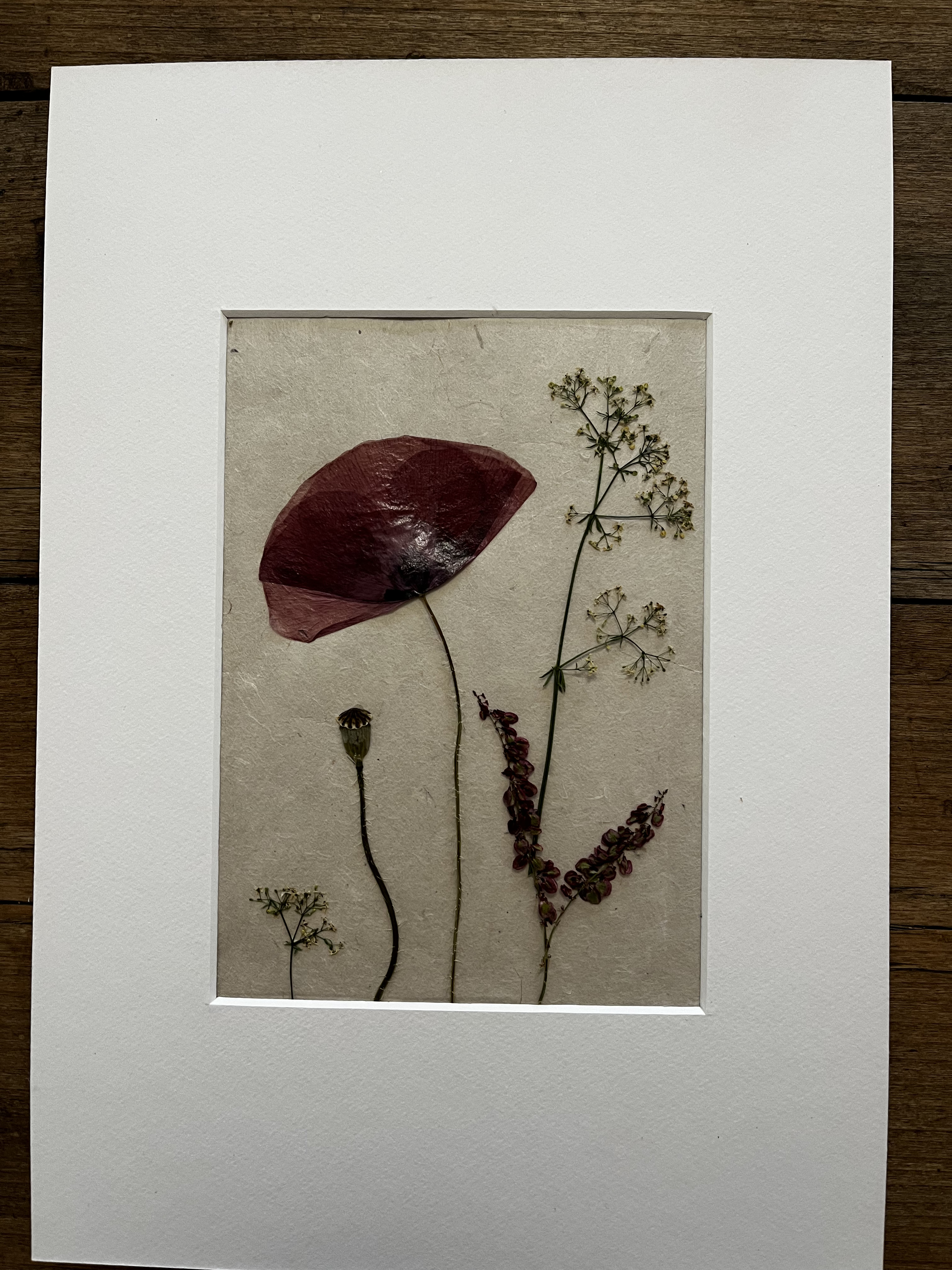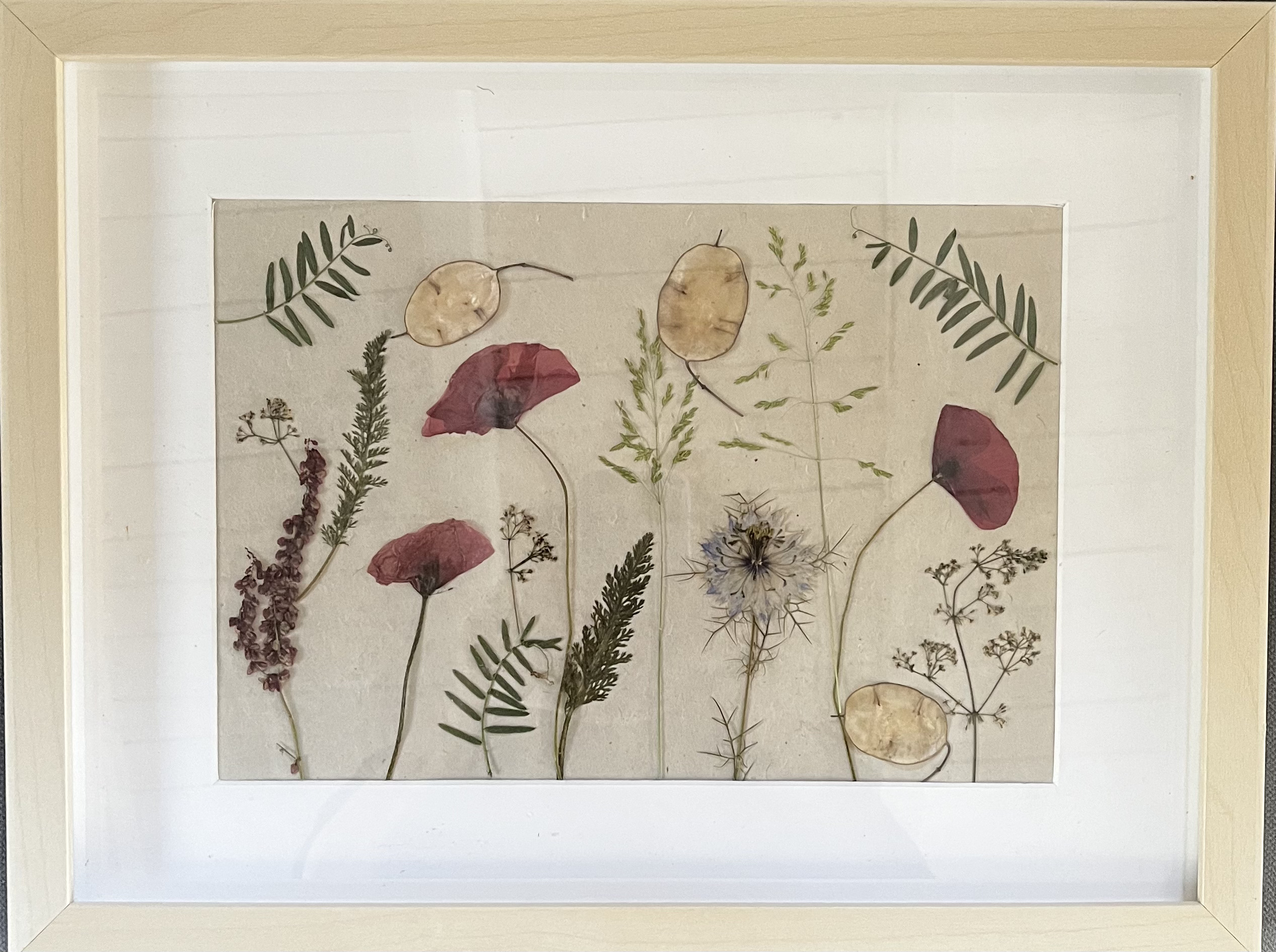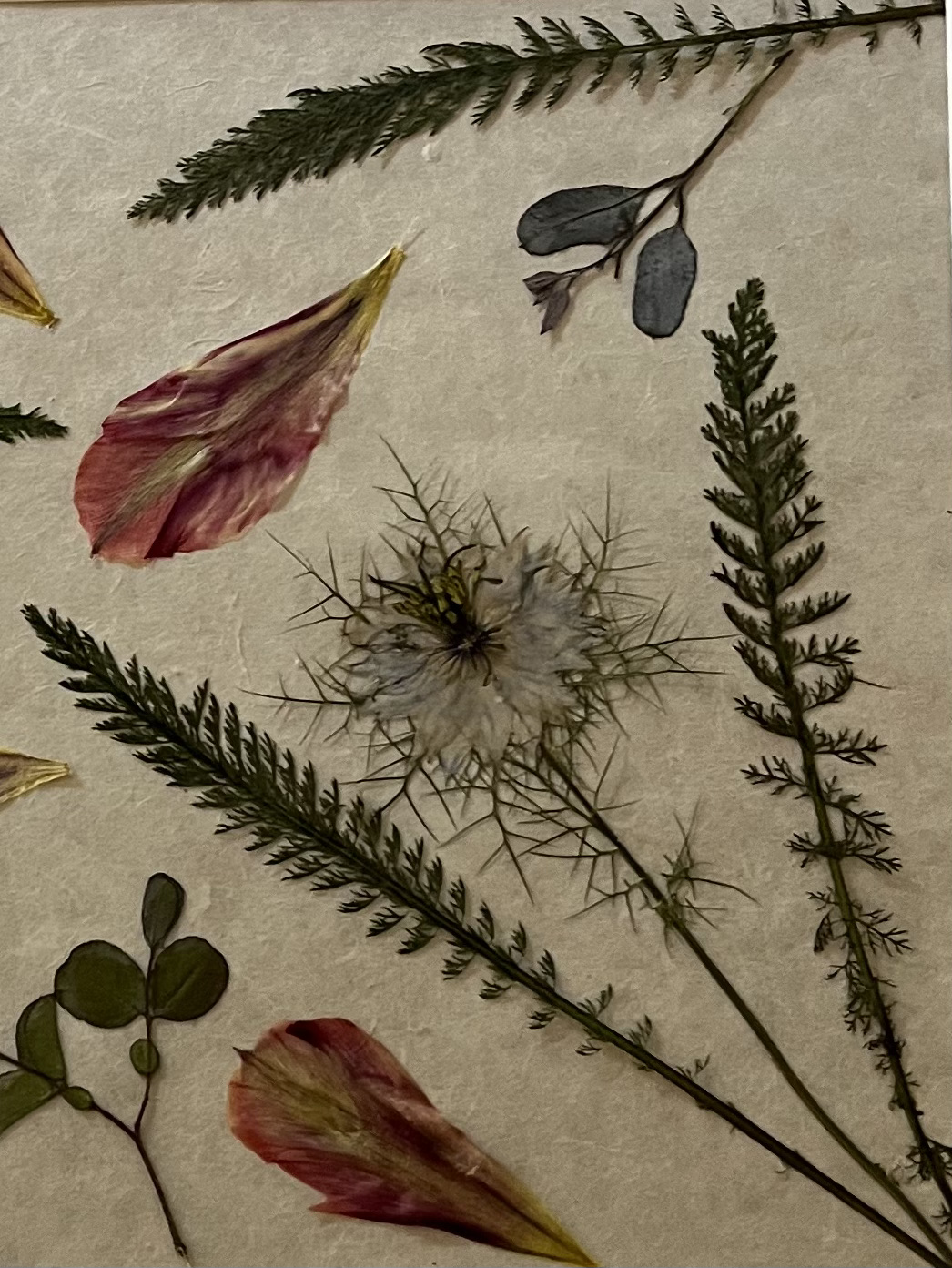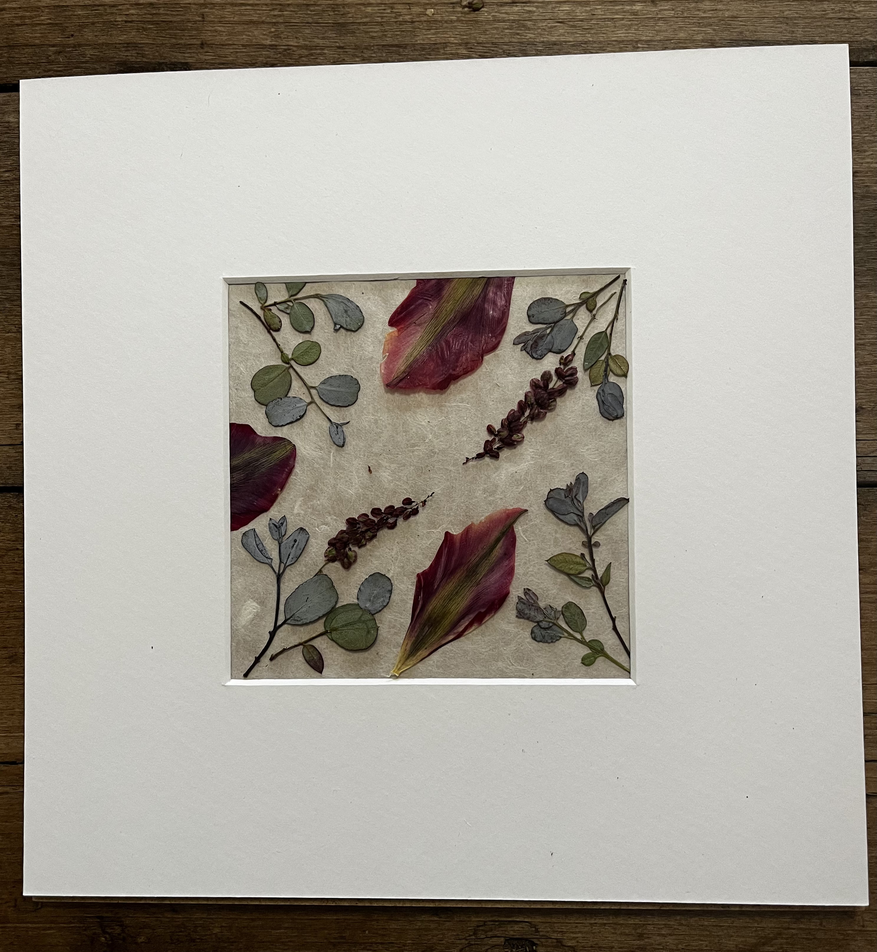 Prensar flores y trabajar con ellas no estaba en mi plan inicial. Llegué a esta técnica por la observación de mis primeros tulipanes. Un pétalo que cae sobre la mesa de madera y la luz del sol que entra por la ventana se proyecta sobre él… ¿Cómo sería poder ver estos pétalos al trasluz? Entonces empecé a adentrarme en el mundo de los papeles naturales, de los papeles orientales. De ahí a investigar con distintos pegamentos, marcos y acabados, hasta que poco a poco fui encontrando mi propio estilo.